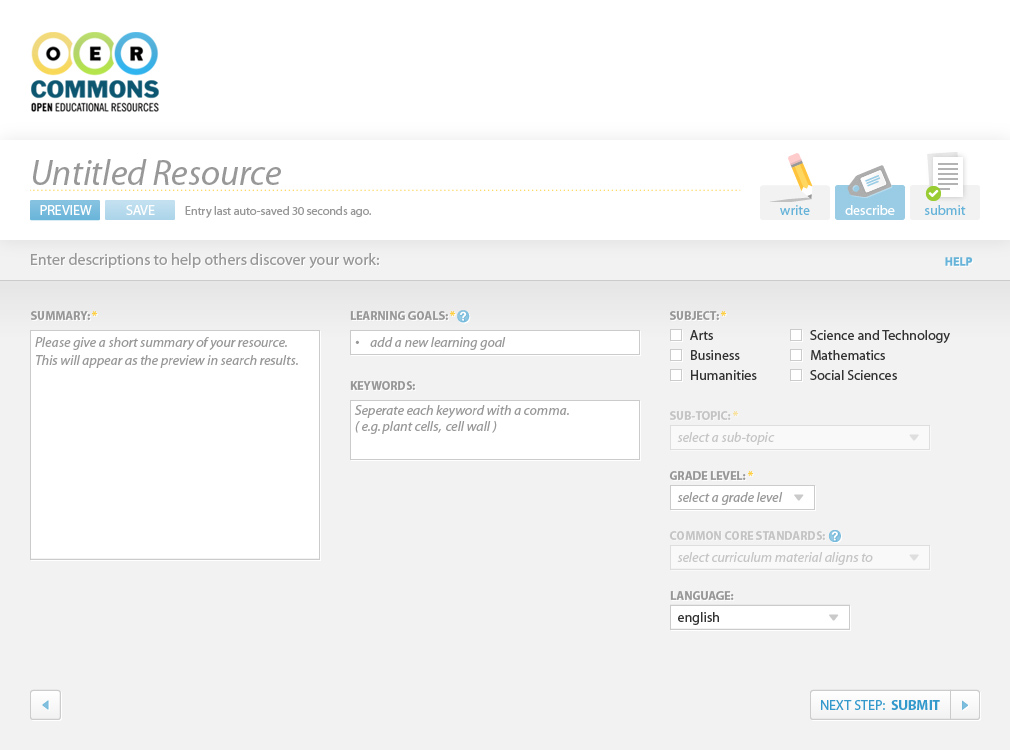 ISKME: More images of the OER Commons authoring environment are available at OER Commons authoring tool high fidelity mockups