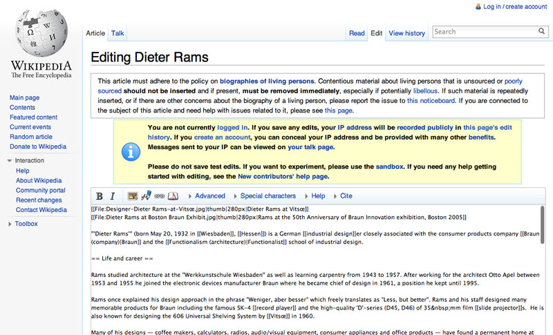 Figure 12: MediaWiki authoring environment.
